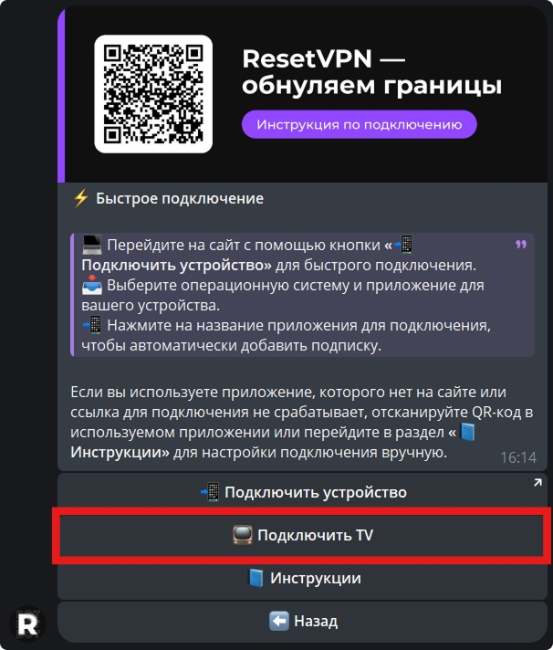 В нашем Telegram-боте перейдите в раздел «👤 Личный кабинет» → « 🔑 Управление ключами» и нажмите на ваш ключ, чтобы перейти к его настройкам. Перейдите в «⚡ Быстрое подключение».