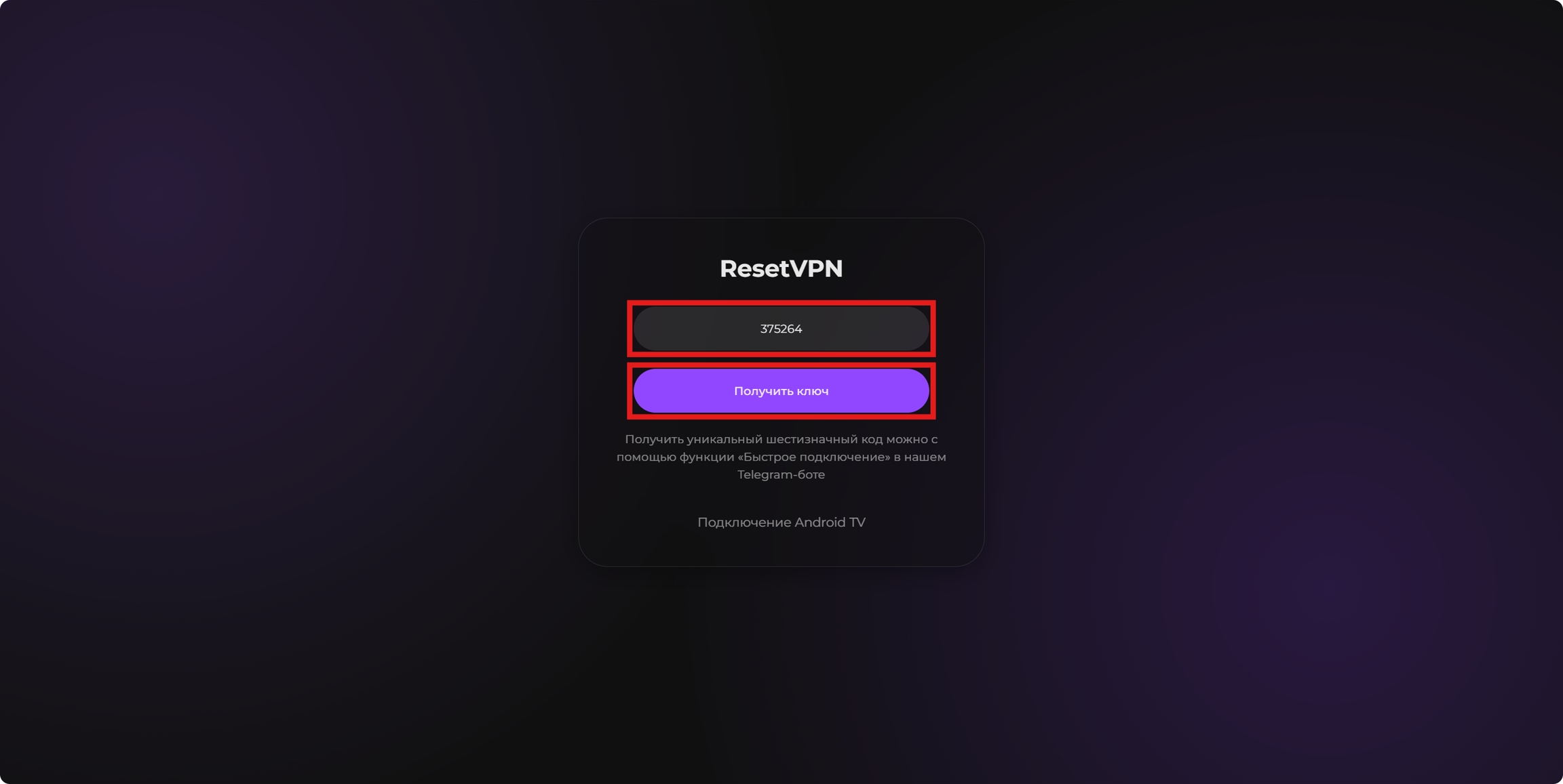 Введите в поле ваш уникальный шестизначный код, затем нажмите «Получить ключ».