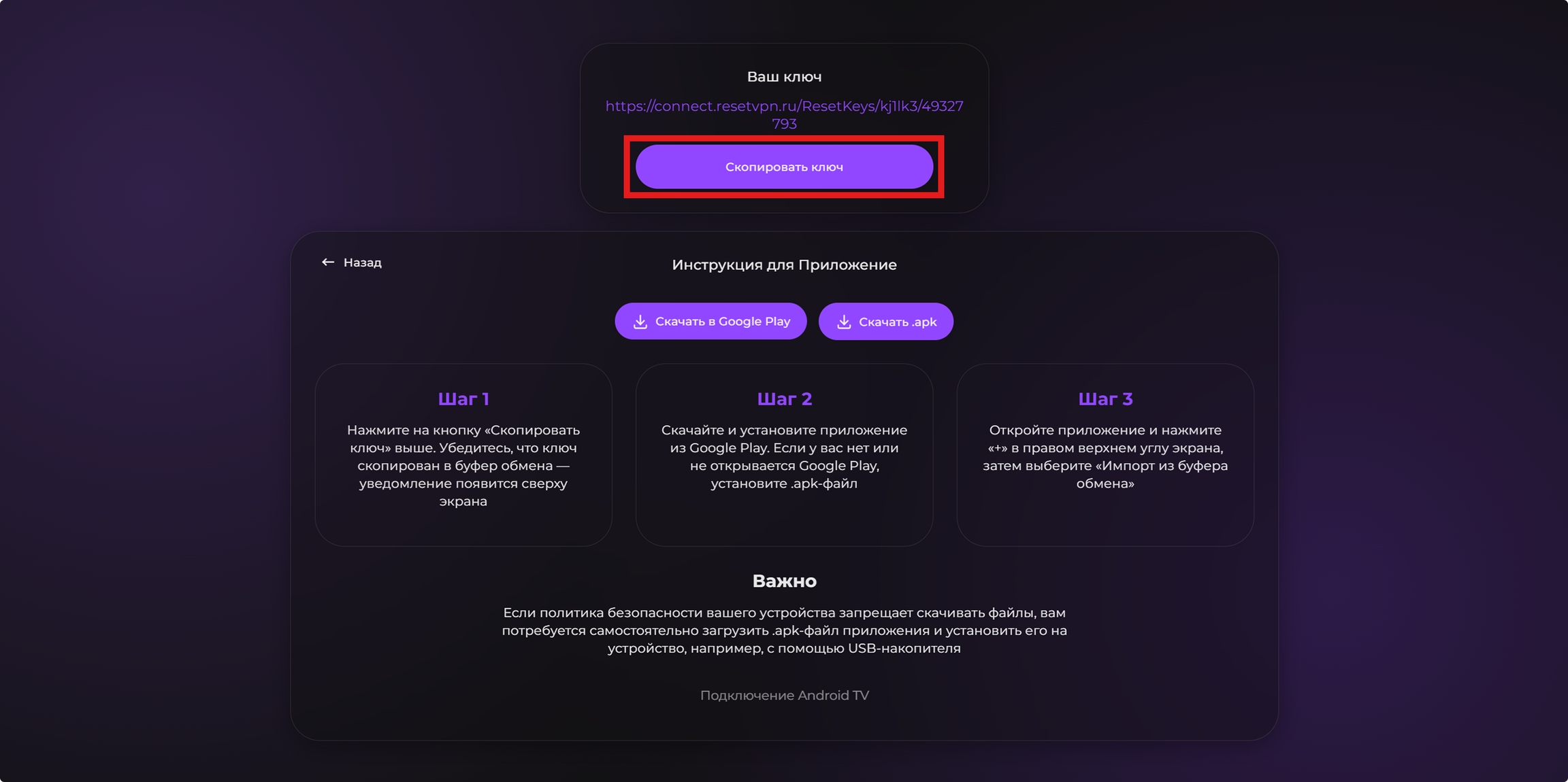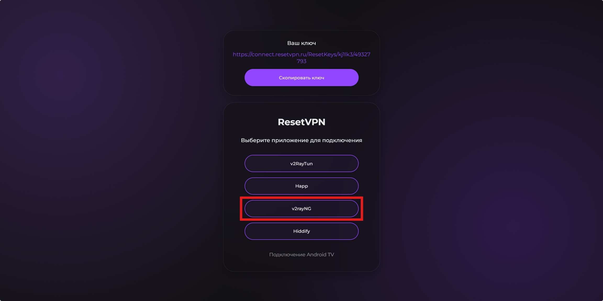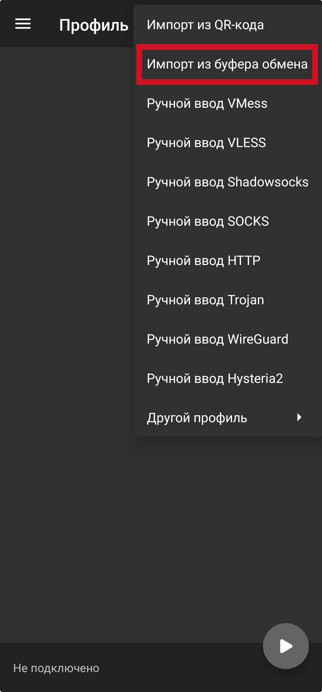После уведомления о том, что ключ скопирован, перейдите в приложение v2rayNG.