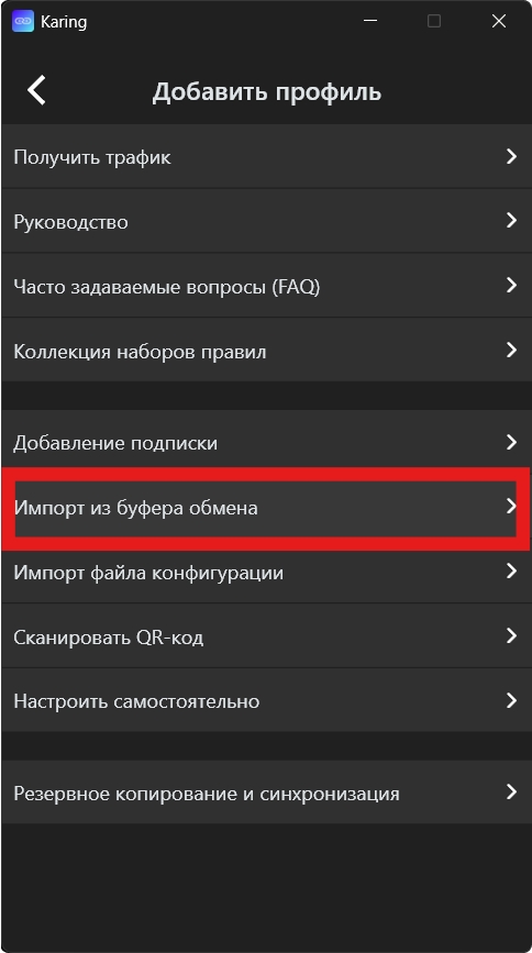 Установите на ваше мобильное устройство приложение Karing с помощью магазина приложений или с помощью установочного файла.