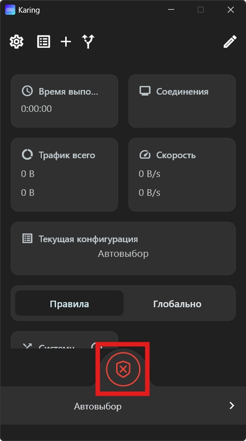 Вернитесь в начальный раздел и выполните подключение к VPN с помощью кнопки со значком красного щита в нижней части приложения.