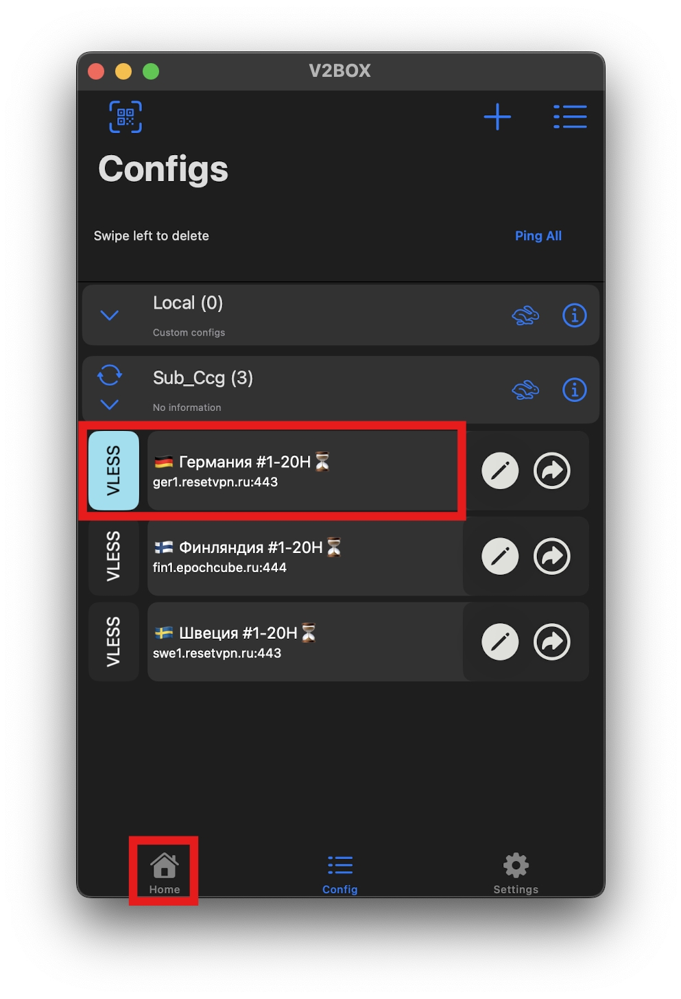 В списке появятся добавленные ключи — их будет несколько, каждый привязан к своей локации. Выбрав подходящую, перейдите в раздел «Home».