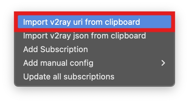 В открывшемся меню выберите «Import v2ray uri from clipboard» и нажмите «Разрешить вставку».