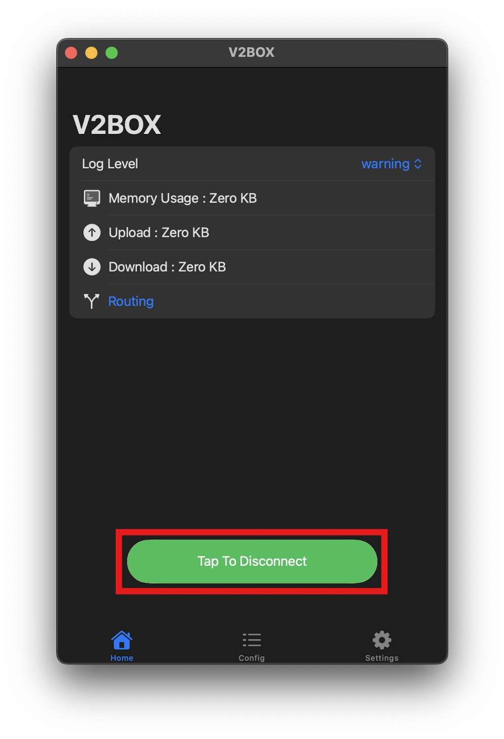 Чтобы отключить VPN, нажмите на зелёную кнопку «Tap To Disconnect» в нижней части приложения.