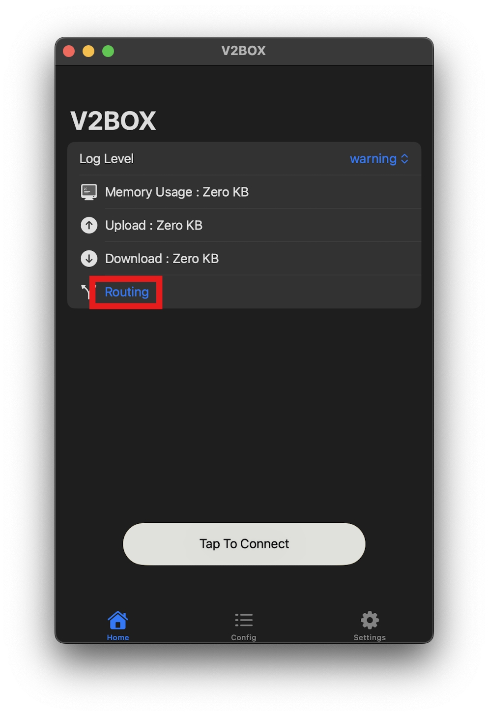 Чтобы включить функцию и добавить сайты и сервисы для подключения без VPN, перейдите в раздел «Home» и выберите «Routing».