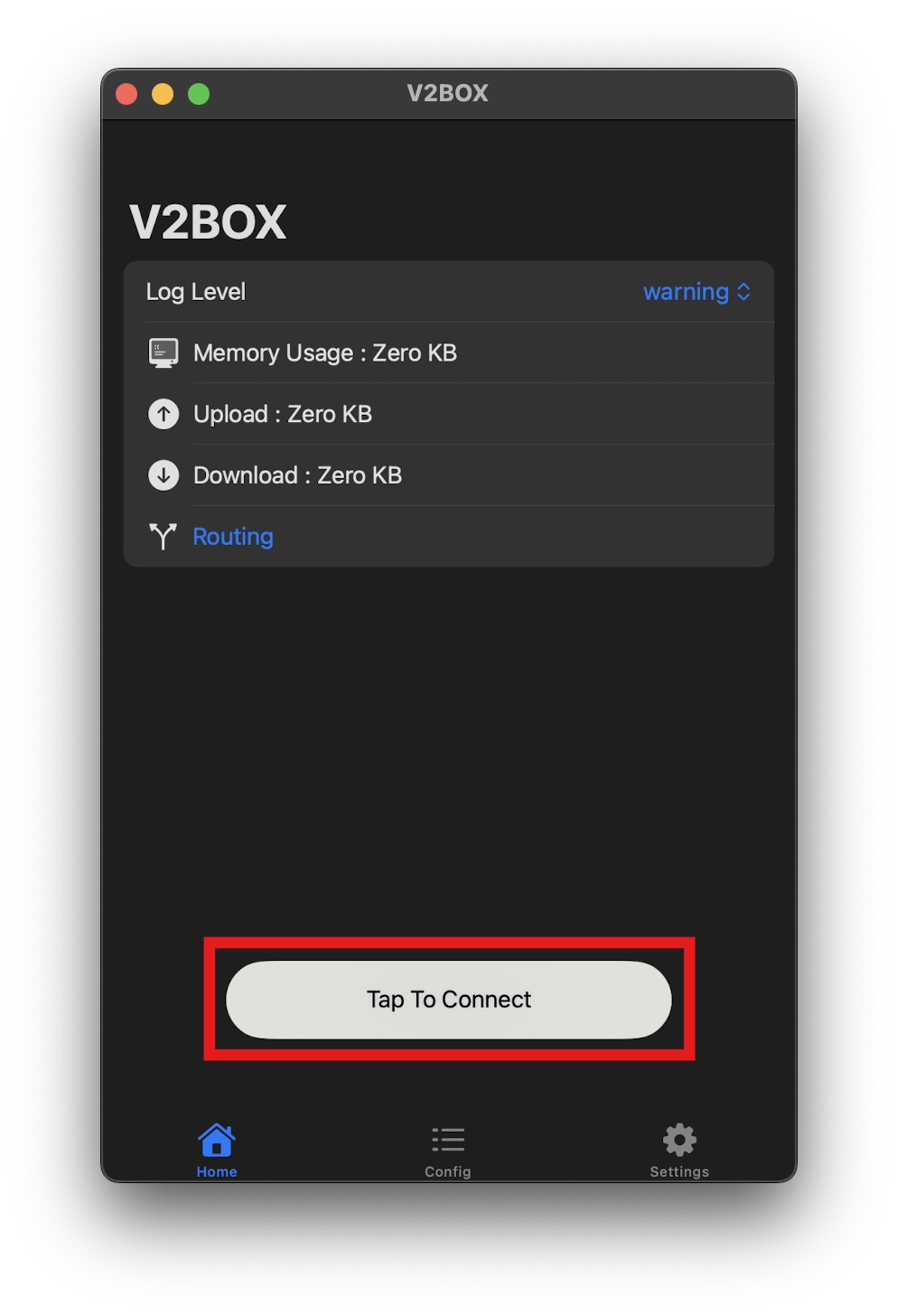 Выполните подключение к VPN с помощью слайдера «Tap To Connect» в нижней части приложения.