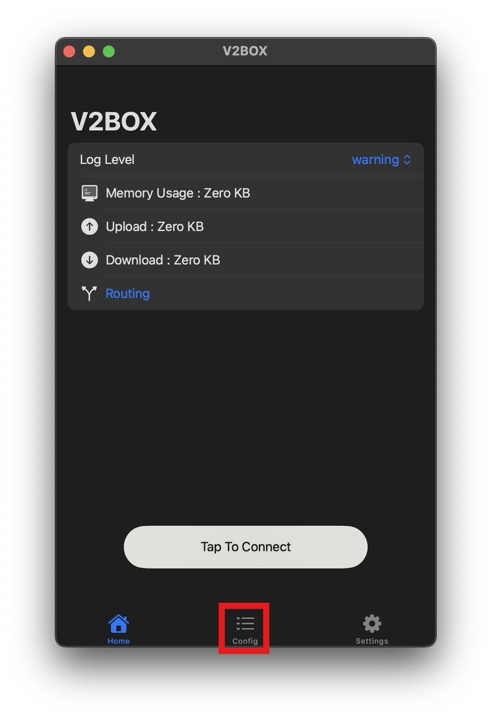 Оказавшись в главном меню приложения, нажмите «Configs» в нижней части приложения.