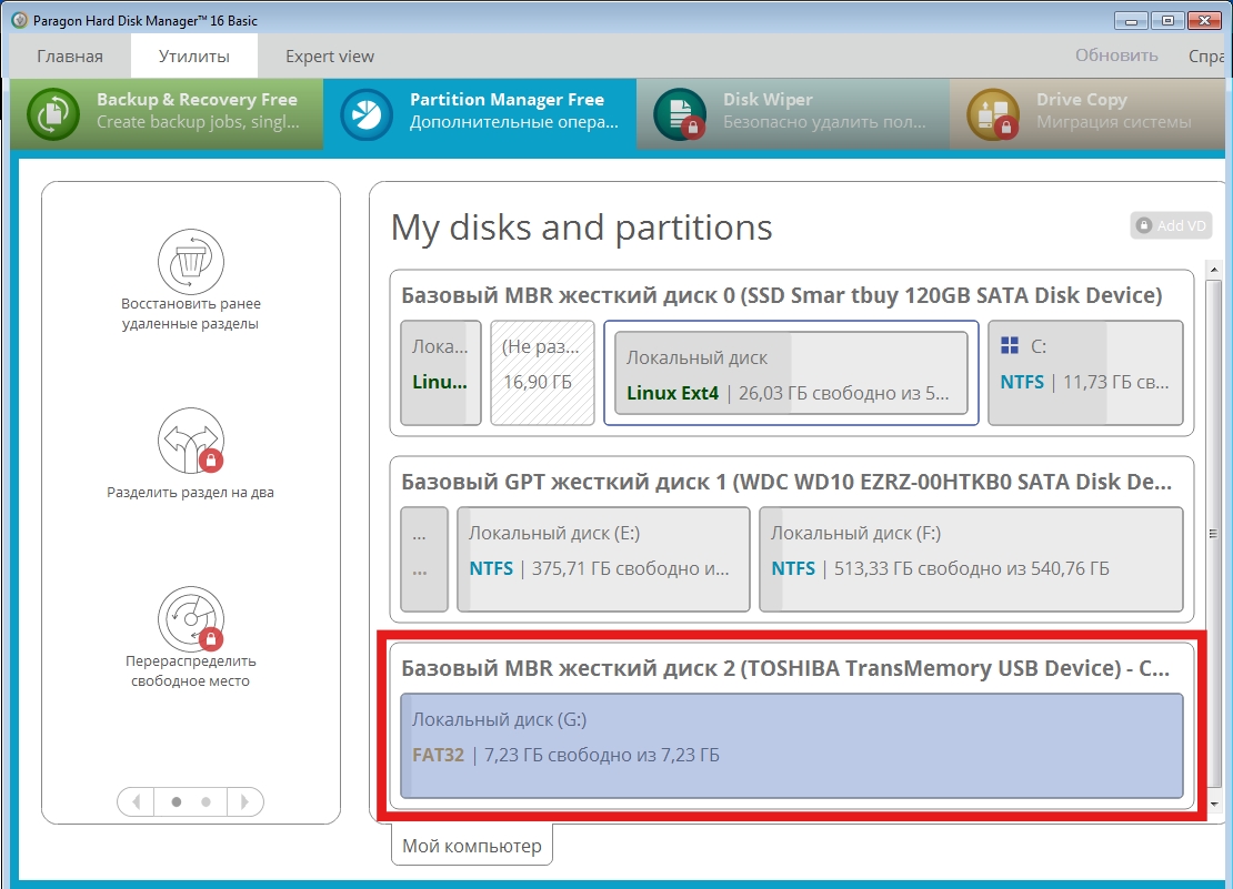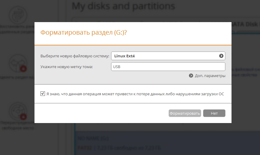 Для форматирования можно использовать бесплатную версию программы: Paragon Partition Manager Free