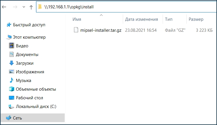 На компьютере с помощью файлового менеджера подключитесь к диску по сети, используя адрес \\192.168.1.1\opkg (в операционной системе Windows это можно сделать через Проводник).