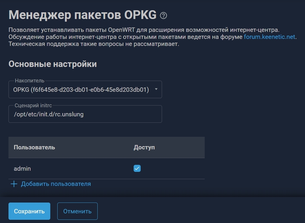 После этого настройки будут сохранены, и роутер будет готов к работе с системой пакетов OPKG.