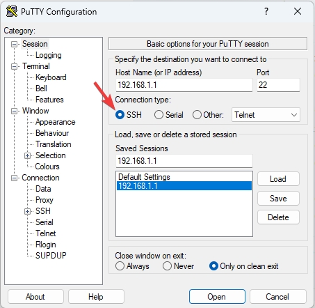Далее перейдите в настройки роутера при помощи протокола Secure Shell (SSH).