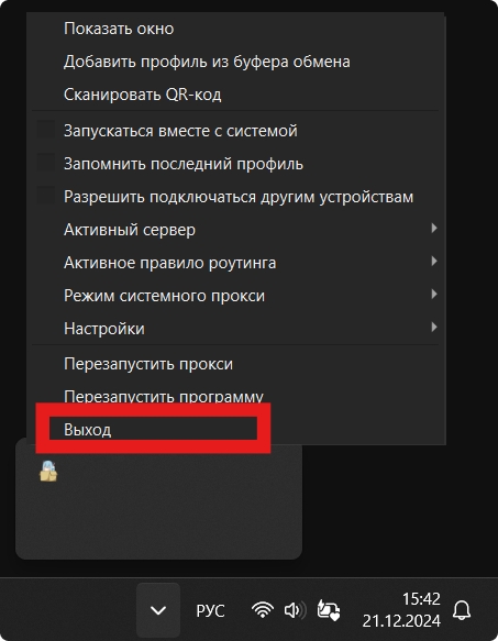 Полное закрытие программы возможно через трей на панели задач. Нажмите правой кнопкой мыши на иконку сервиса и выберите пункт «Выход».