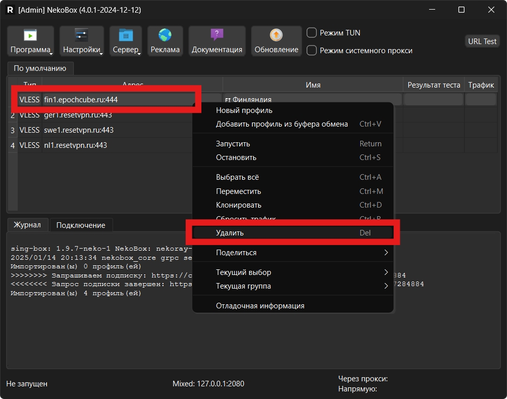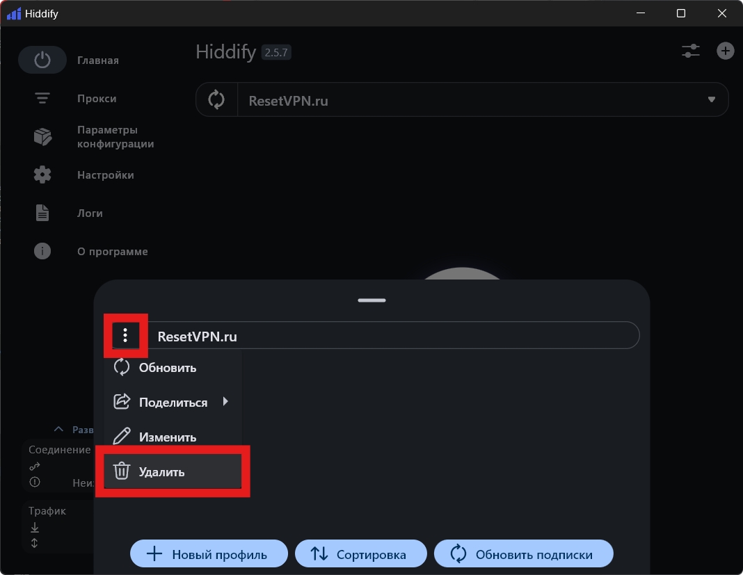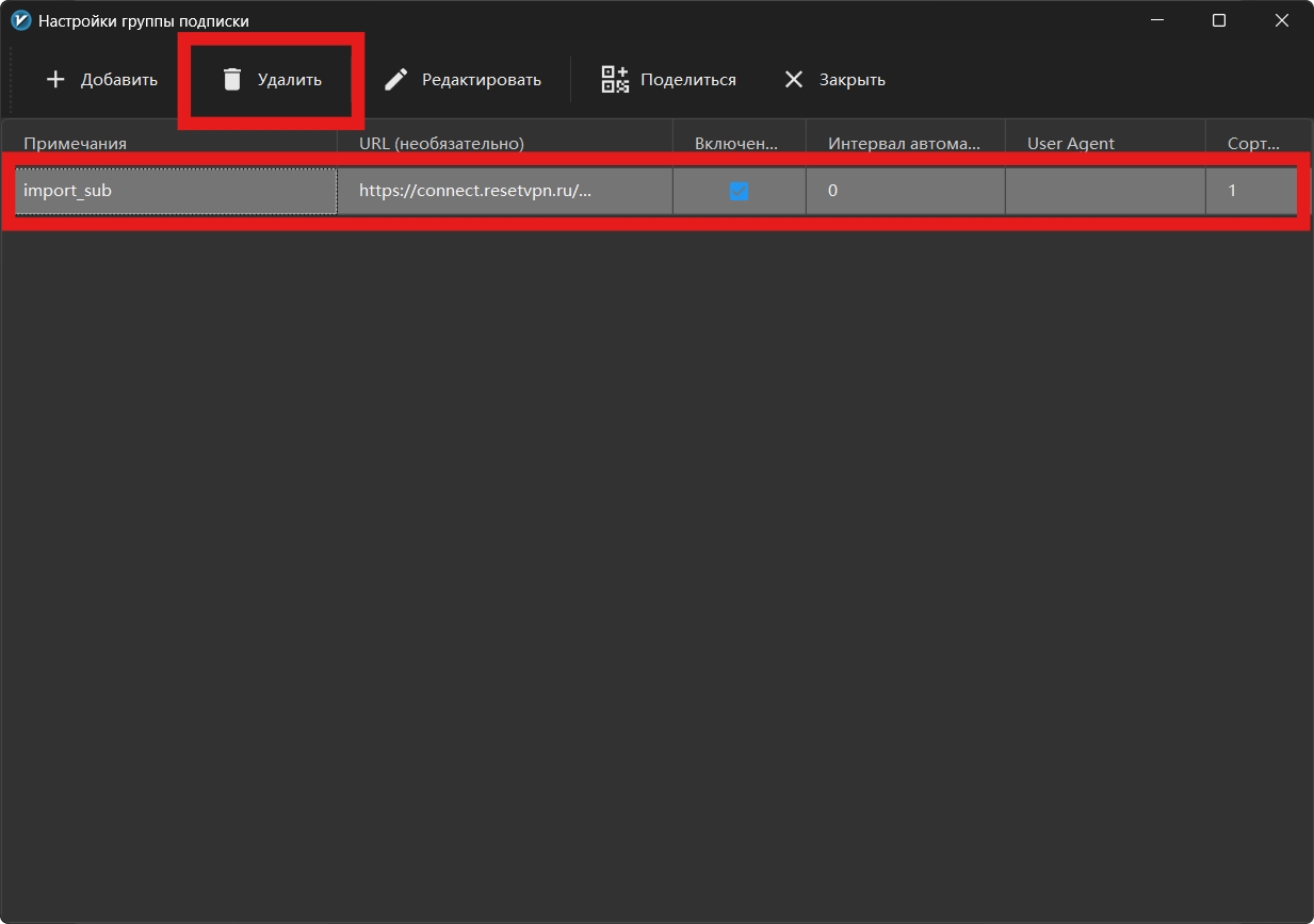 Выделите вашу подписку с помощью однократного нажатия левой кнопки мыши и нажмите «Удалить».