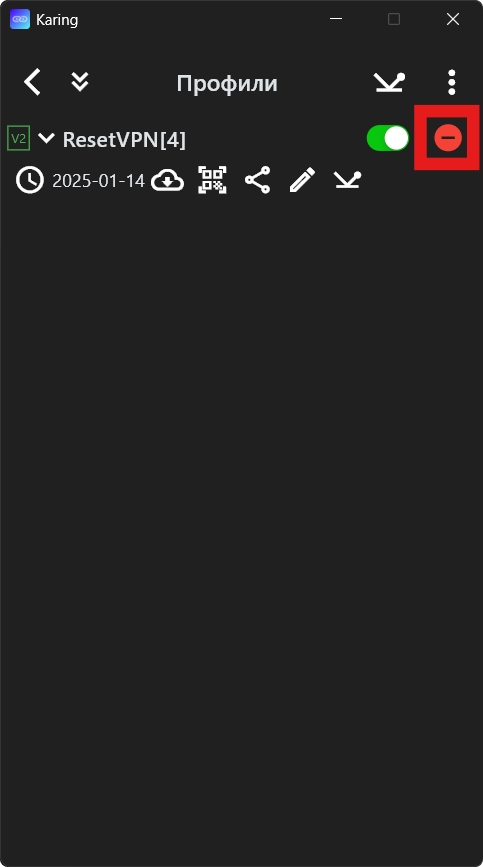 Нажмите на «⛔» (красную кнопку с минусом), чтобы удалить ключ из приложения.