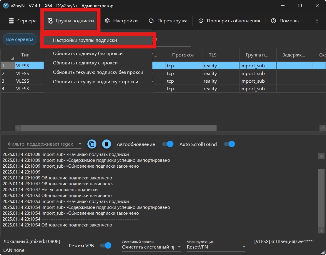 Выберите «Группа подписки». В открывшемся меню выберите «Настройки группы подписки».