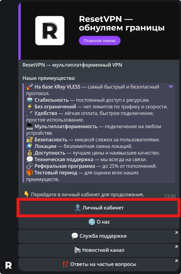 Перейдите в раздел «👤 Личный кабинет».