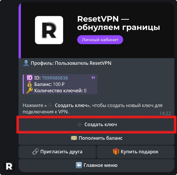 Перейдите в «➕ Создать ключ».