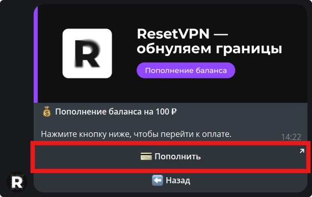 Перейдите на страницу пополнения с помощью кнопки «💳 Пополнить».