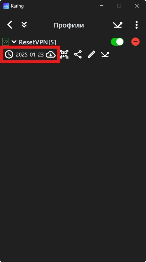 Нажмите на иконку «☁️» (облако), чтобы обновить подписку.